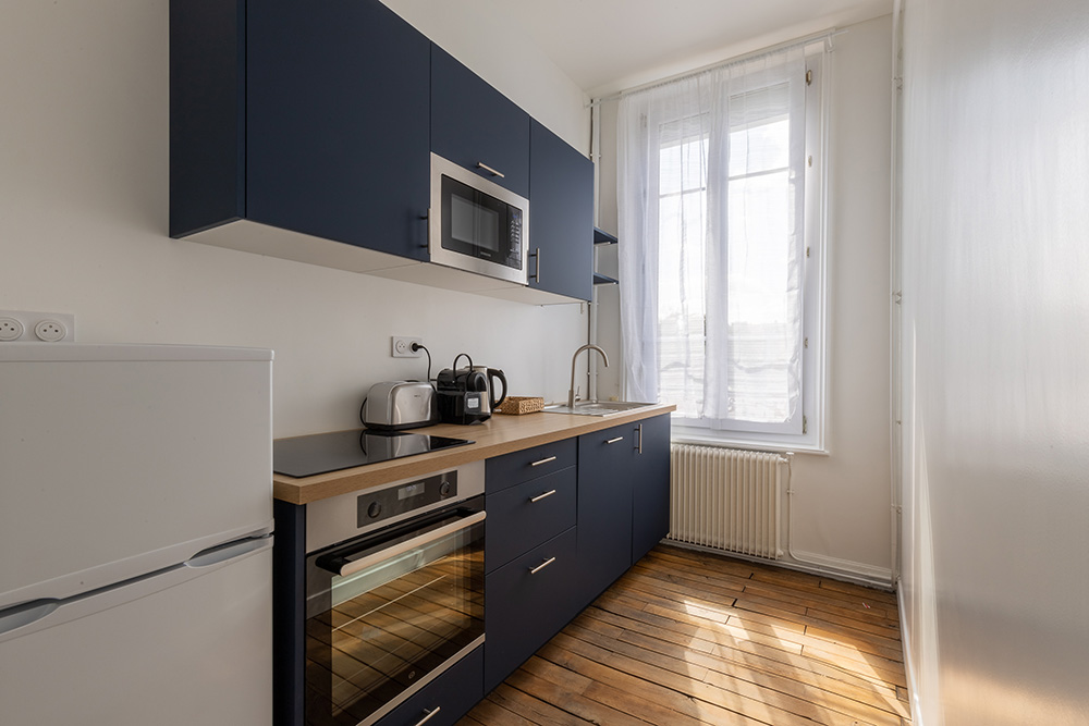 Son balcon privatif avec vue sur la ville constitue un véritable atout pour profiter de l’atmosphère du centre de Reims. Cet appartement peut accueillir jusqu’à deux personnes et convient parfaitement pour un séjour touristique, un week-end en Champagne ou un déplacement professionnel.