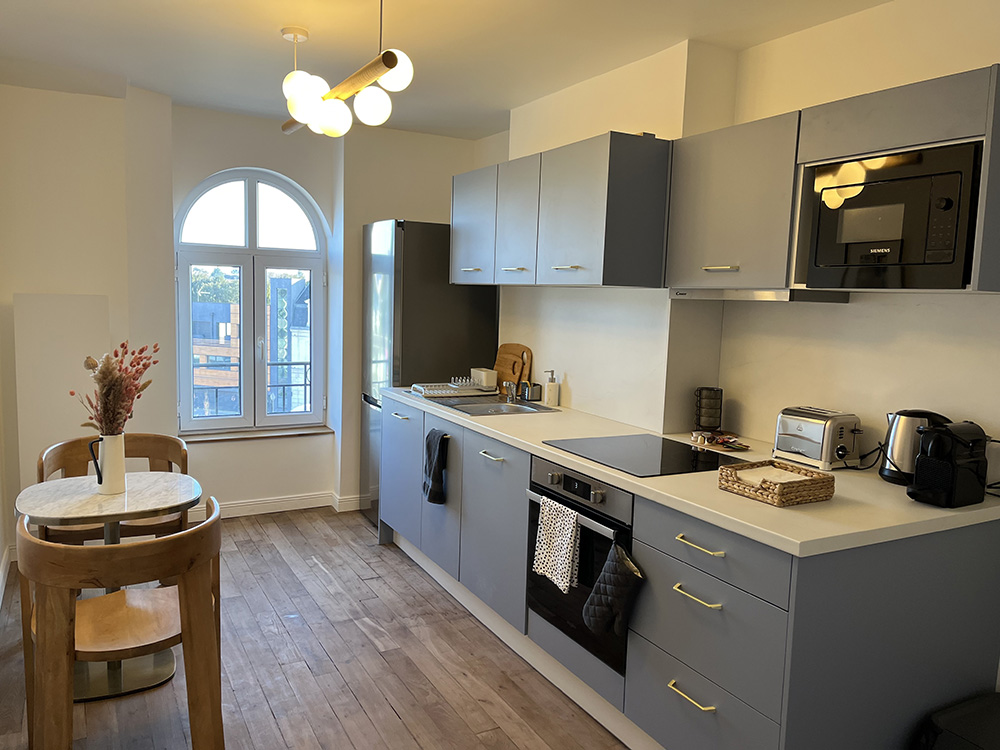 La cuisine entièrement équipée dispose d’une plaque de cuisson, d’un réfrigérateur, d’un lave-vaisselle ainsi que de tous les ustensiles indispensables pour cuisiner en toute autonomie. Un coin repas convivial vous permet également de partager vos moments gourmands.